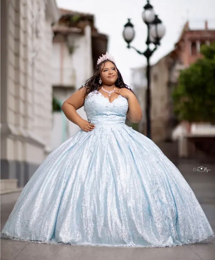CORTE V CORSETH CON DETALLES DE FLORES CELESTE Y FULL ESCARCHAS PLATEADAS