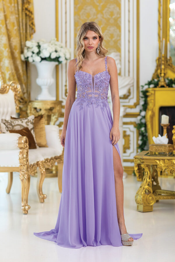 CAIDA LIBRE CON PIERNA AFUERA TIRAS AJUSTABLES COLOR LILA DE TIRITAS Y TRANPARENCIA