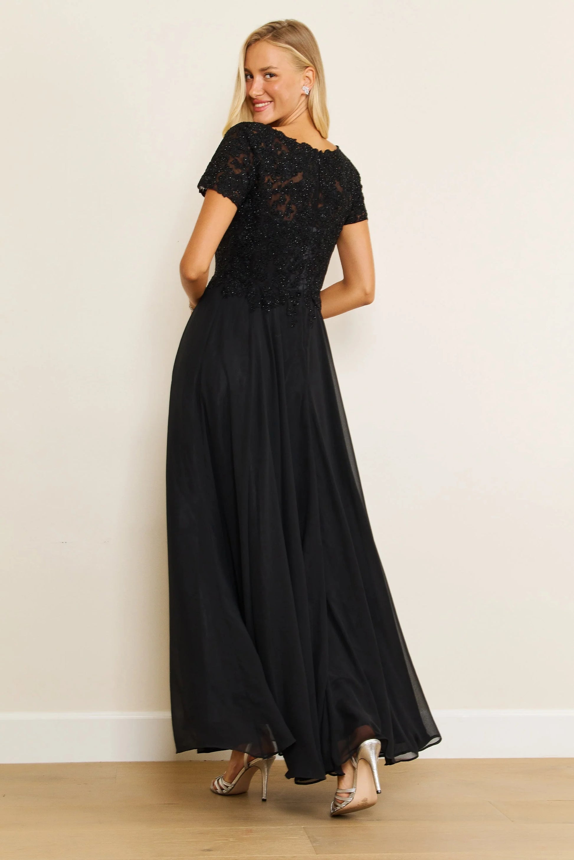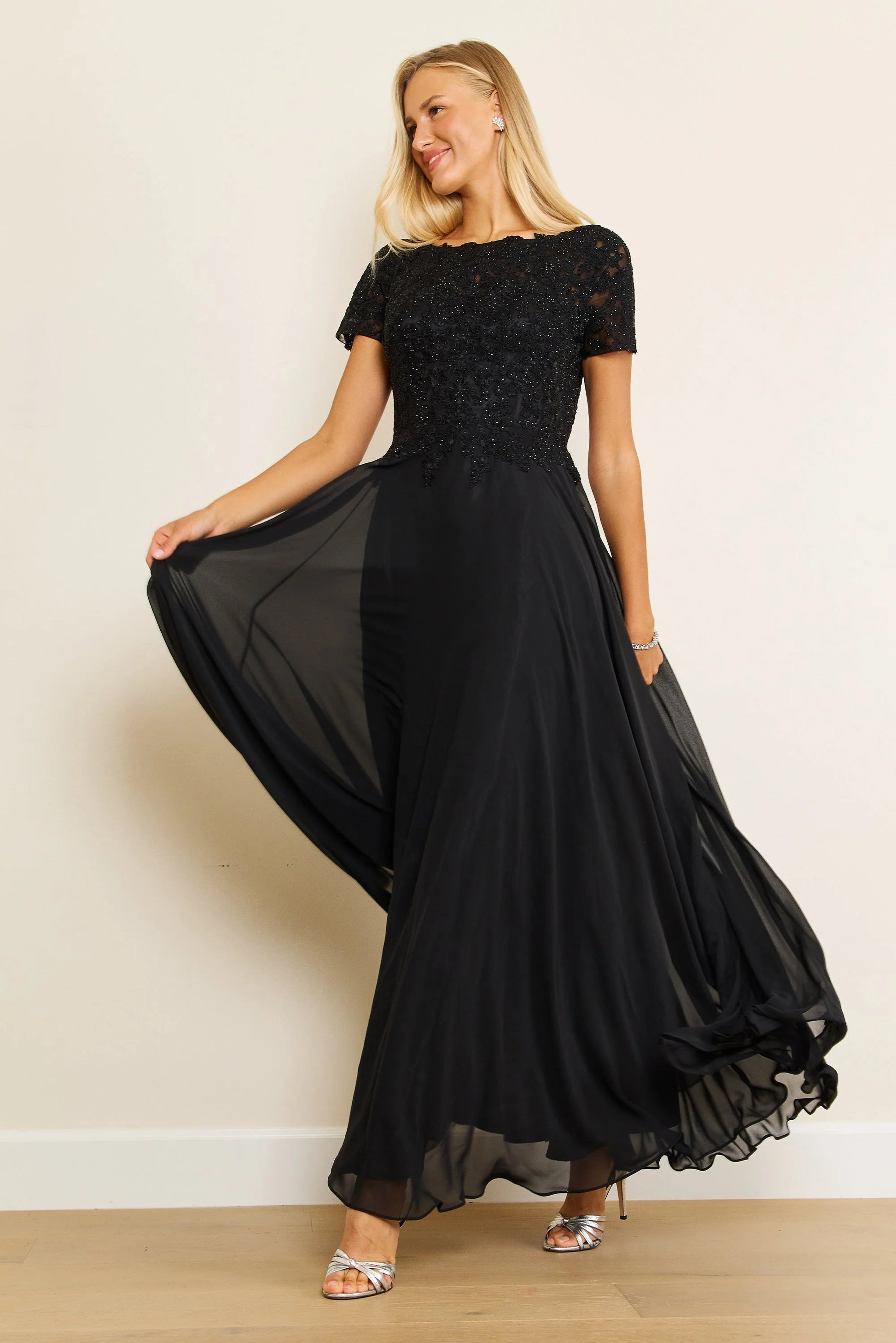 LARGO PLUS SIZE COLOR NEGRO CON MANGA CORTA Y TELA CAIDA LIBRE