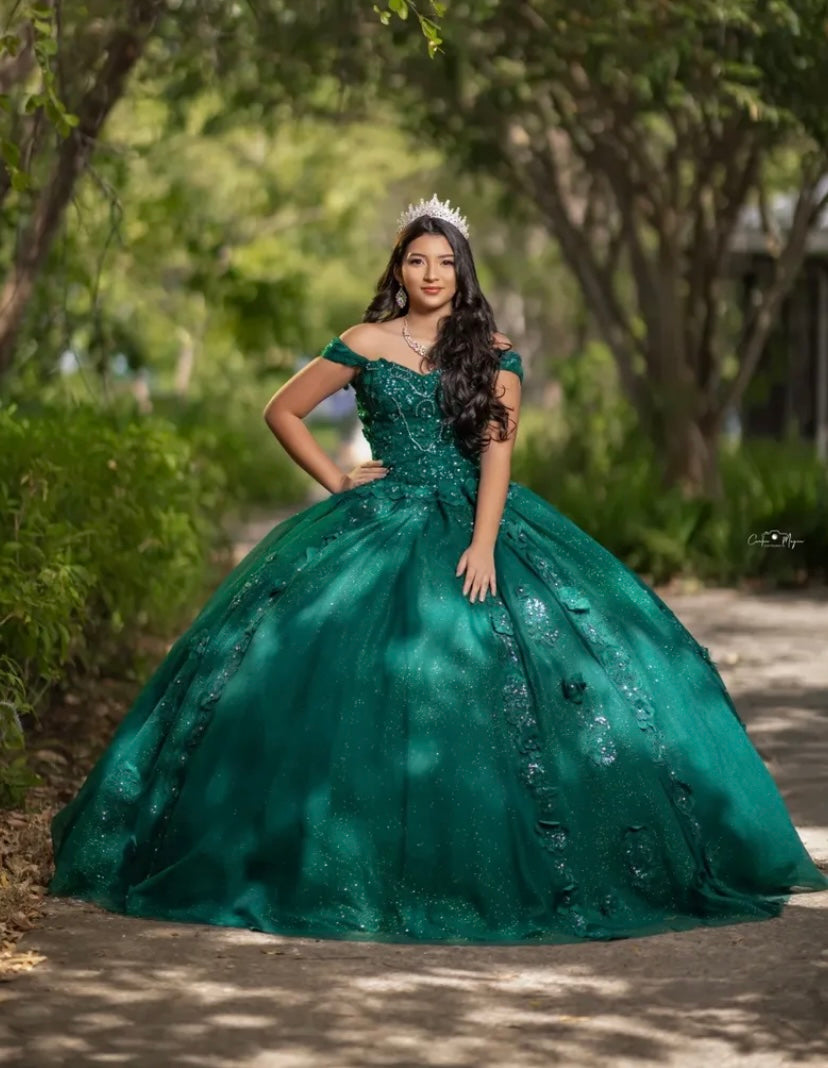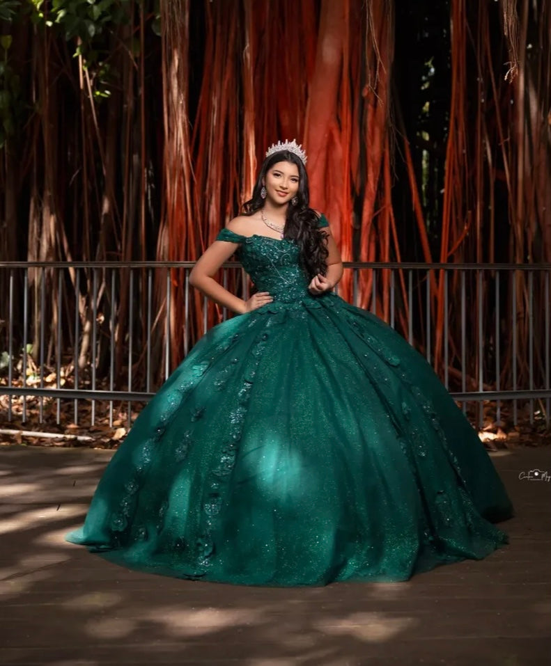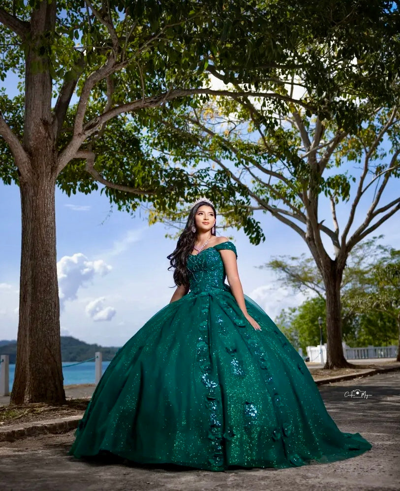 Verde Esmeralda con Flores Verdes y Cola