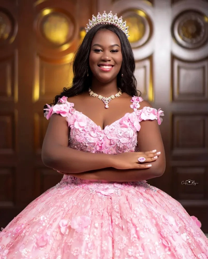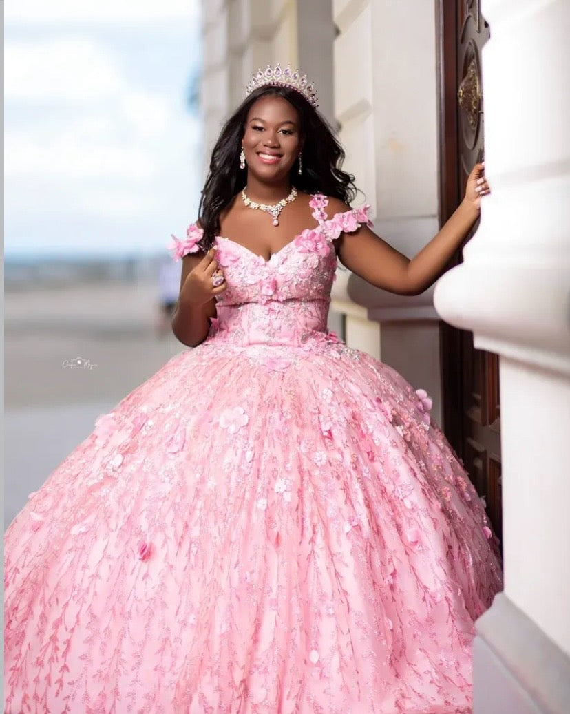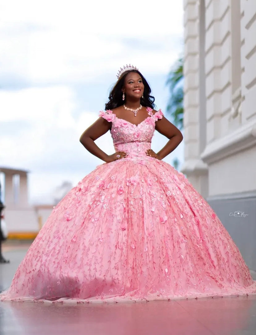 CON TIRAS-CORSETH Y DETALLES DE FLORES EN ROSADO CON PIEDRAS PLATA Y BRILLOS